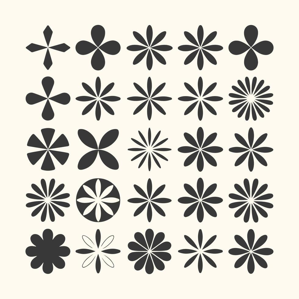 Art of a collection of 25 diverse abstract floral and starshaped graphic elements, isolated on a, perfect for design projects Pro Vector