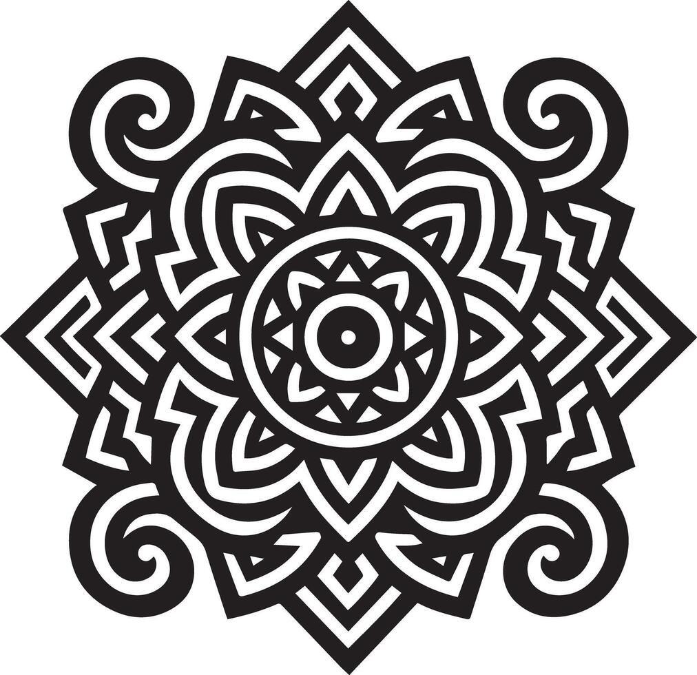 Intricate black and white geometric mandala pattern with swirling elements and sharp edges Pro Vector