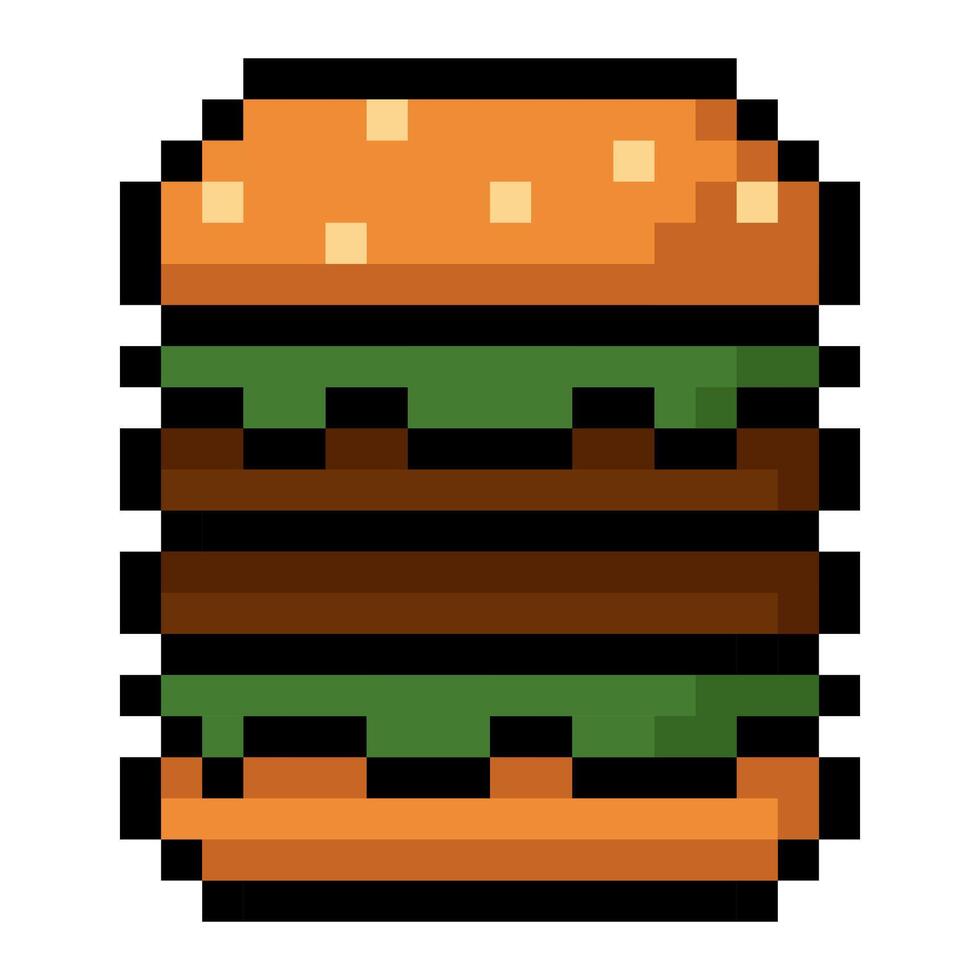 Double hamburger in pixel art style with lettuce and sesame bun isolated on white background Pro Vector