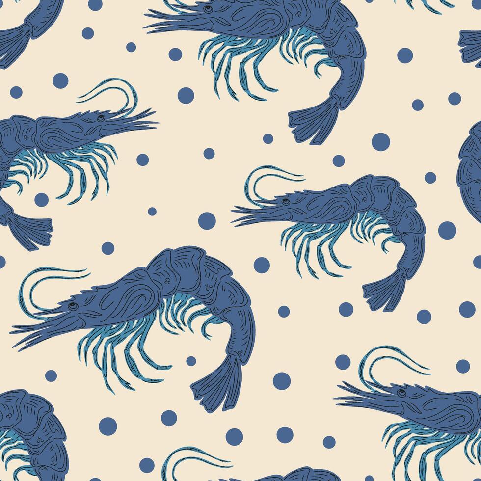 seamless pattern with shrimp on a beige background Pro Vector