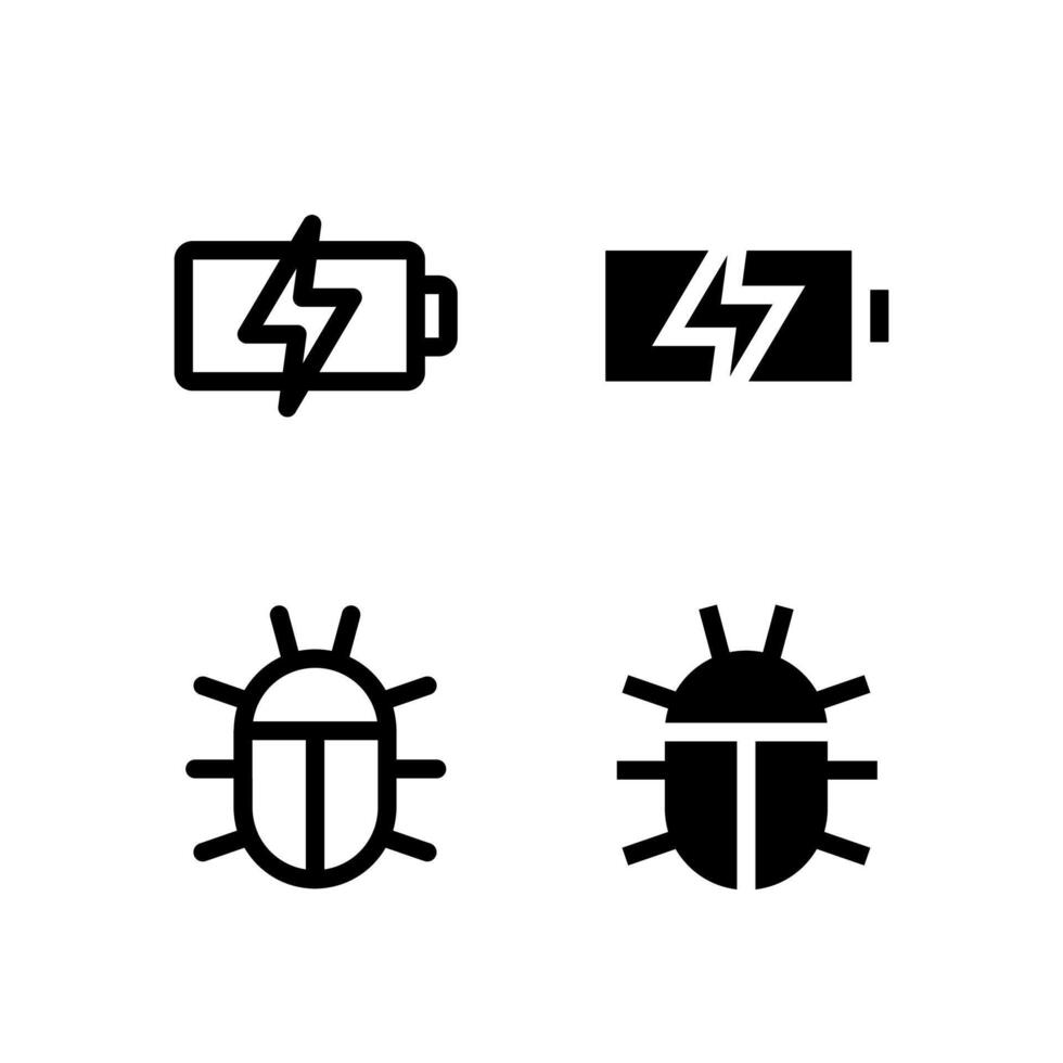 Creative Battery and Bug Report Icon Set for Modern Interface and UX Design Pro Vector