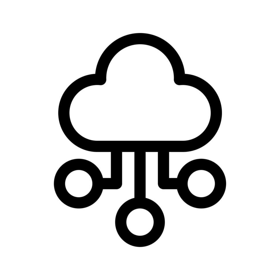 An outline icon of a cloud connected to layered racks, representing cloud infrastructure. vector