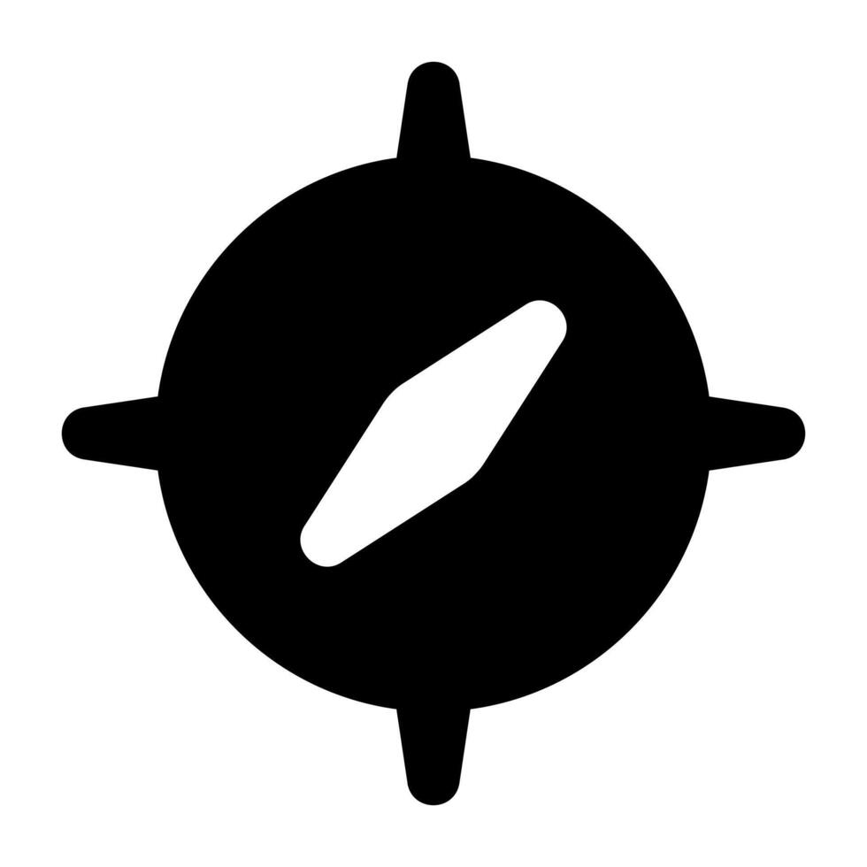 A solid style icon of an instrument showing direction, symbolizing navigation. vector