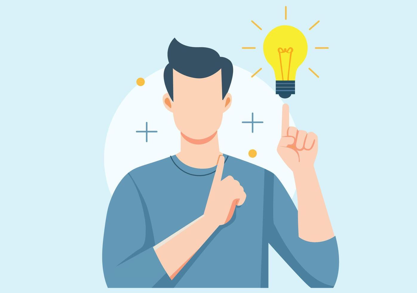 Man Pointing to Glowing Idea Light Bulb Free Vector