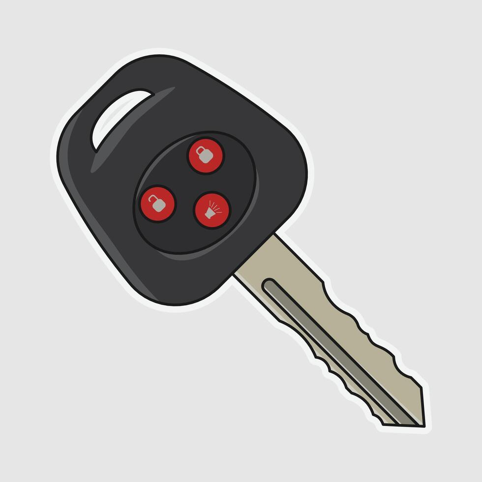 Flat design icon of a car key with alarm, lock, and unlock buttons. Modern vehicle access and security concept illustration Pro Vector