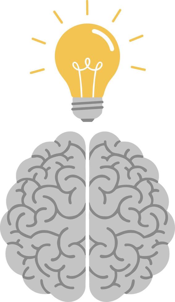 Flat Illustration of Brain with Lightbulb as Idea Concept Design Pro Vector