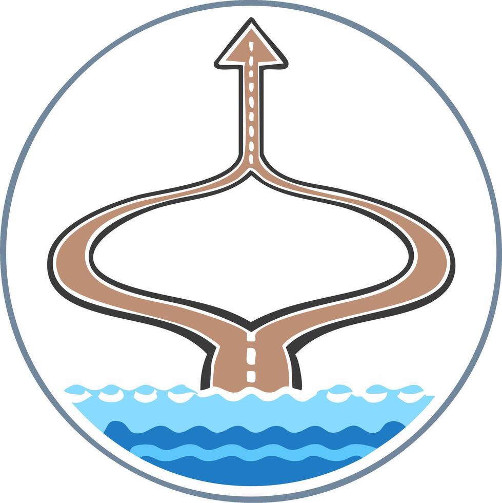 Abstract graphic of a road splitting and rejoining above water, pointing to an upward direction Pro Vector