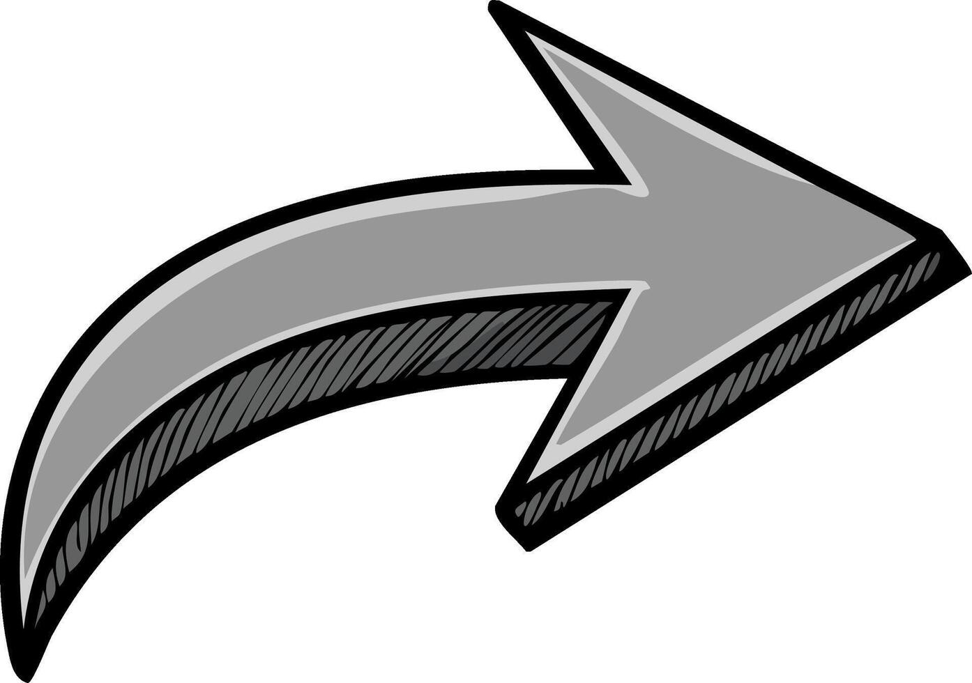 Stylized Gray Arrow Graphic Pointing Rightward with Black Hatch Mark Shading Pro Vector