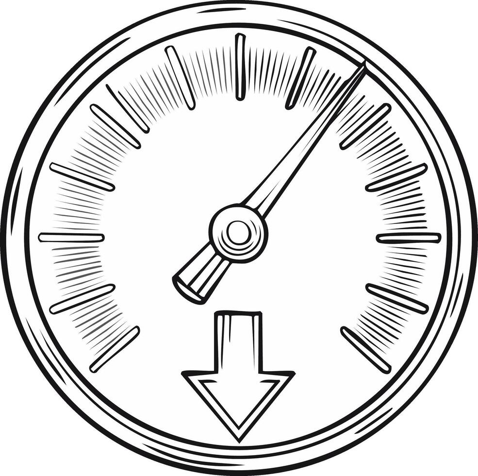 Sketch Style Manometer with Downward Arrow Displaying Decreasing Pressure Measurement Pro Vector