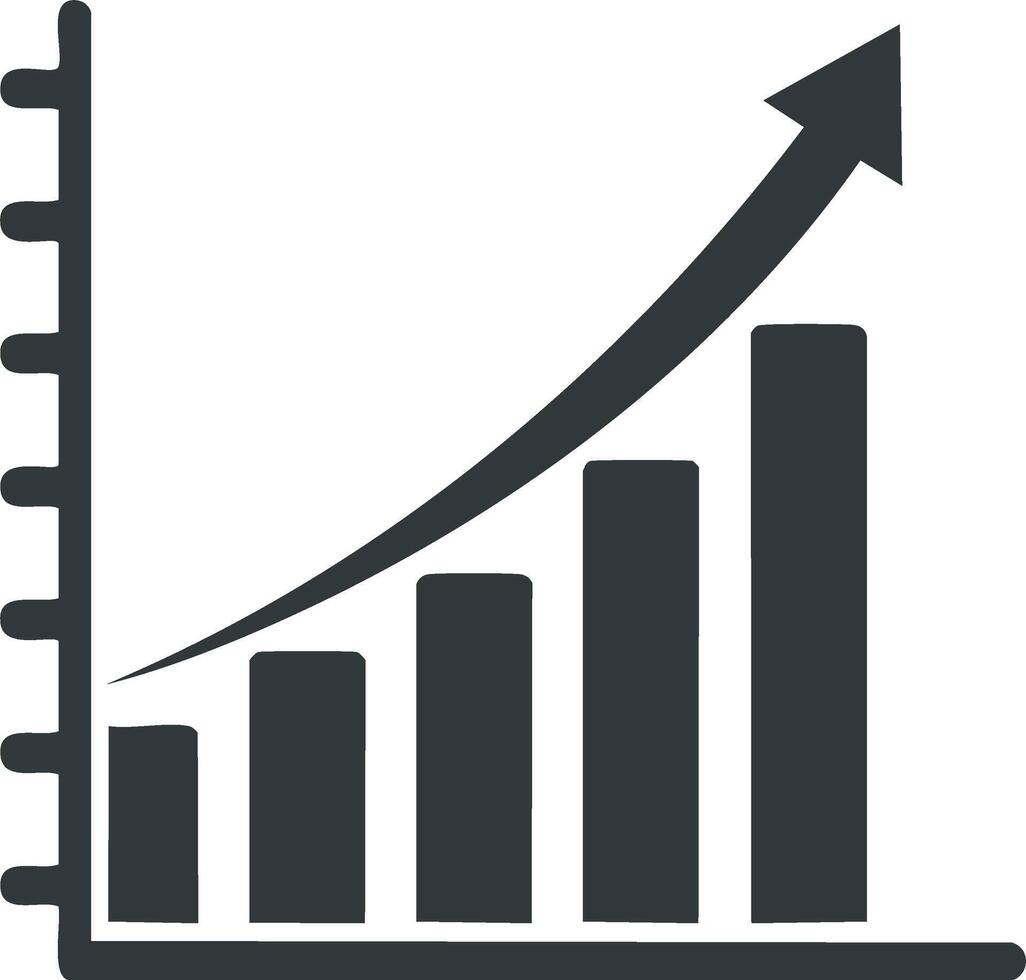 Increasing bar graph icon with upward arrow symbolizing growth and progress Pro Vector