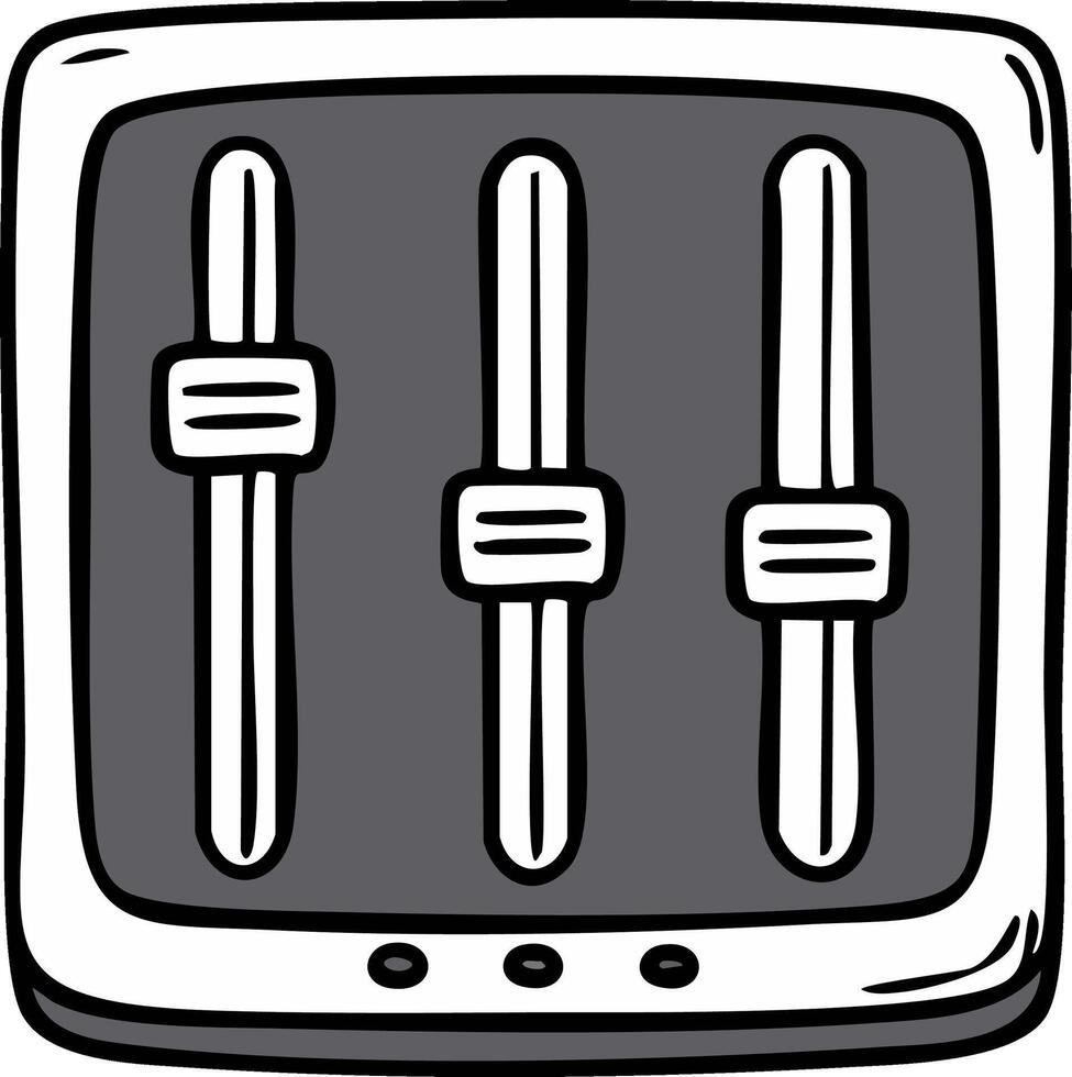 Three vertical faders on a control panel with rounded corners and indicator lights Pro Vector