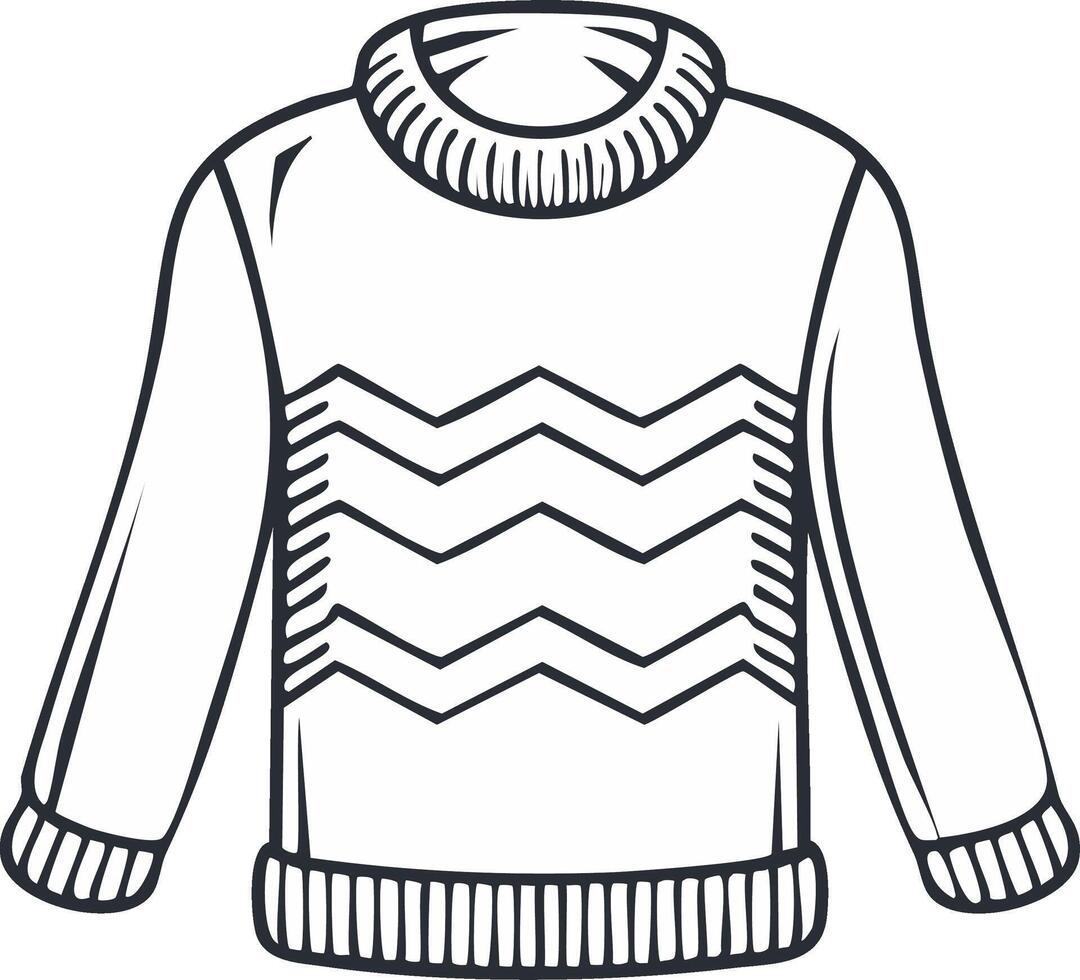Simple Outline of Winter Pullover Sweater with Zigzag Pattern and Turtleneck Collar for Winter and Cold Season Warmth Pro Vector