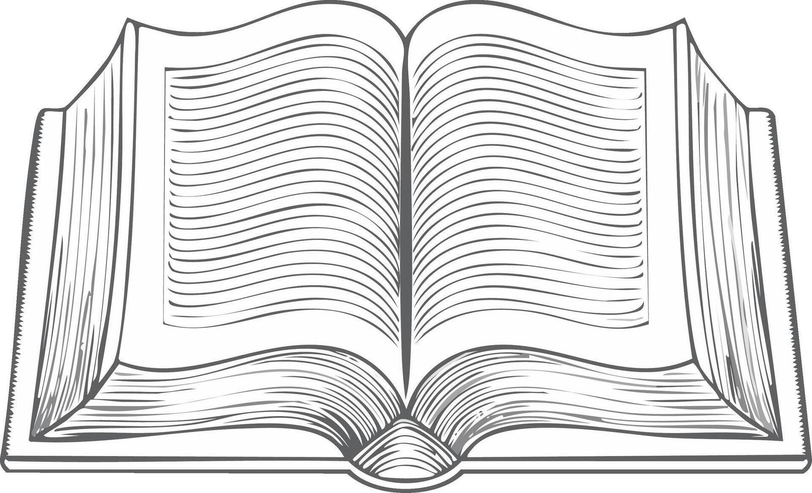 Line art illustration of an open book with blank pages for inserting text or images Pro Vector