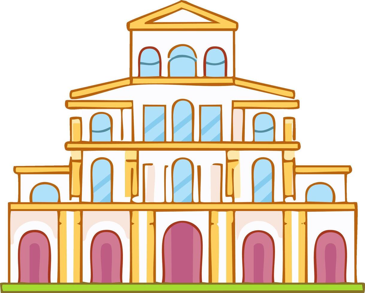 Cartoon Ancient Building With Arches, Columns, and Blue Windows, a Simple Architectural Illustration Pro Vector