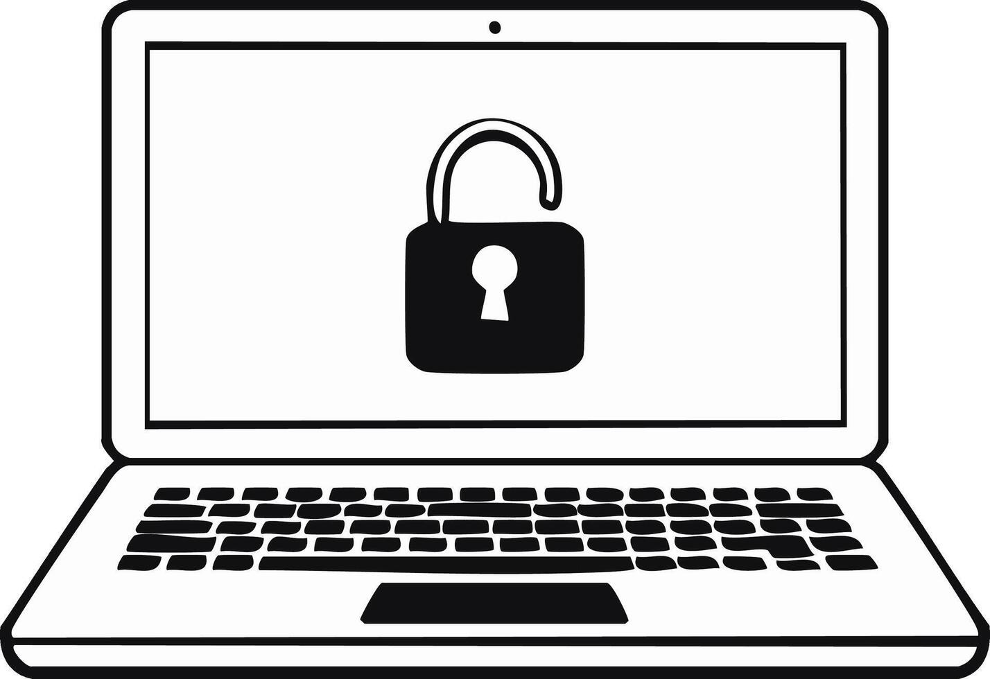 Depiction of a Laptop with Open Lock Illustration for Data Security and Privacy Pro Vector