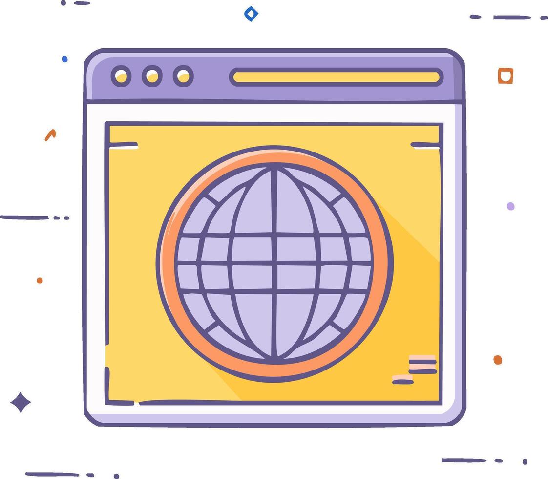 Illustration of a web browser window with globe icon representing the internet and communication Pro Vector