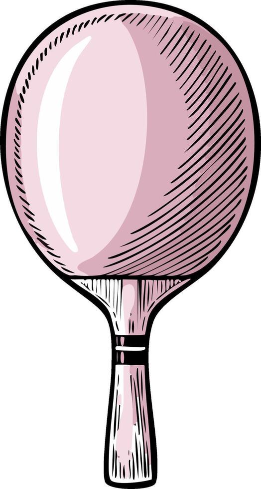 Close up of a pink ping pong paddle in a sketched style with hatching details Pro Vector