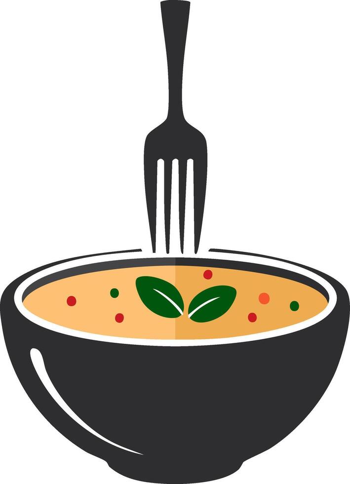 Stylized Bowl of Soup with Fork and Garnish Pro Vector