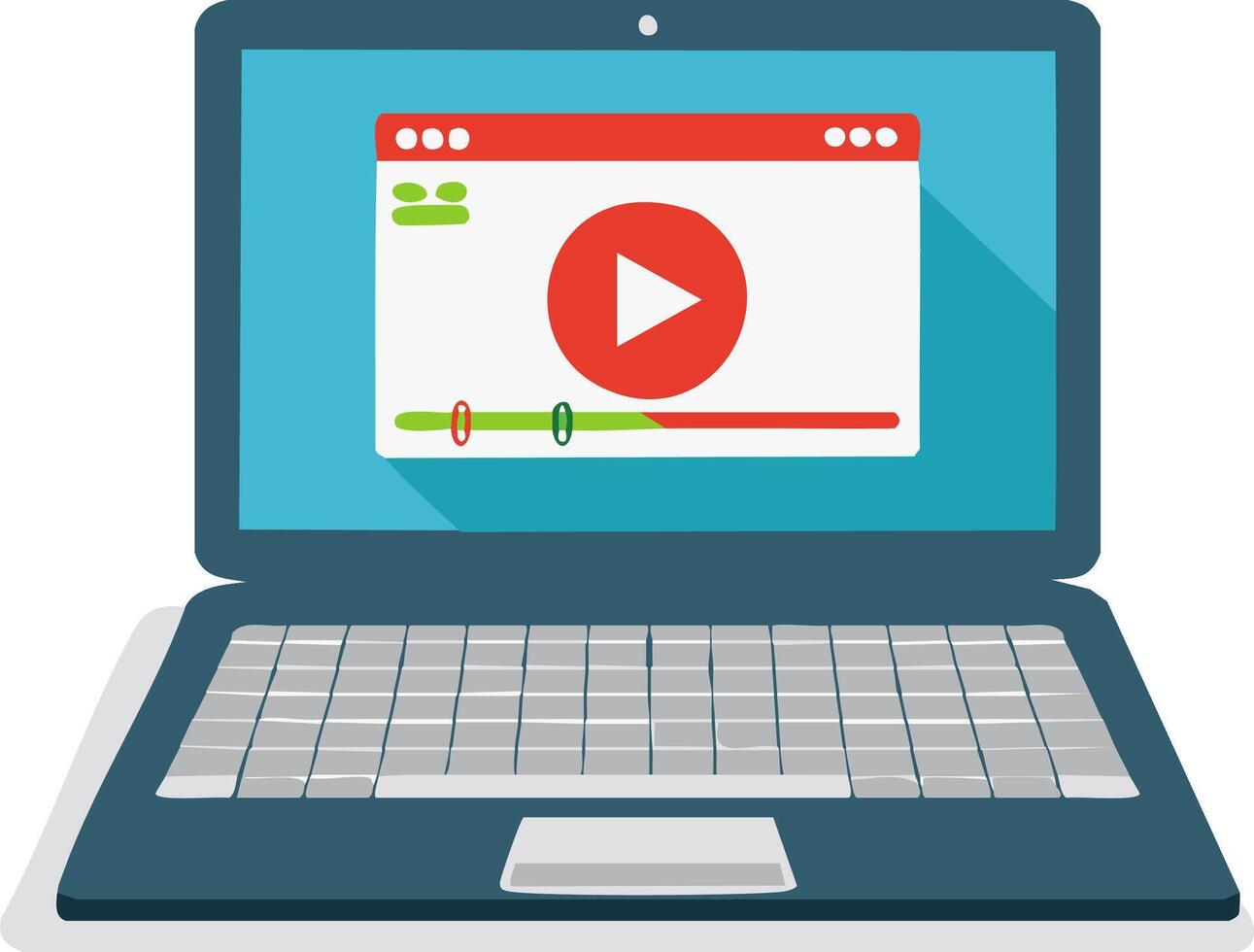 Open Laptop Computer Displaying a Streaming Application with Play Button for Entertainment and Educational Purposes Pro Vector