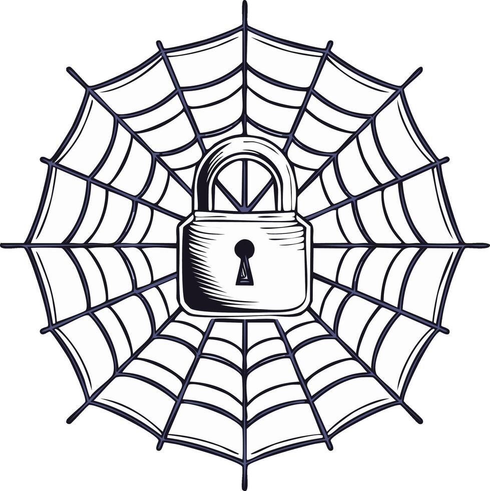 Internet Security Metaphor with a Locked Padlock on a Symmetrical Spider Web Illustration Pro Vector