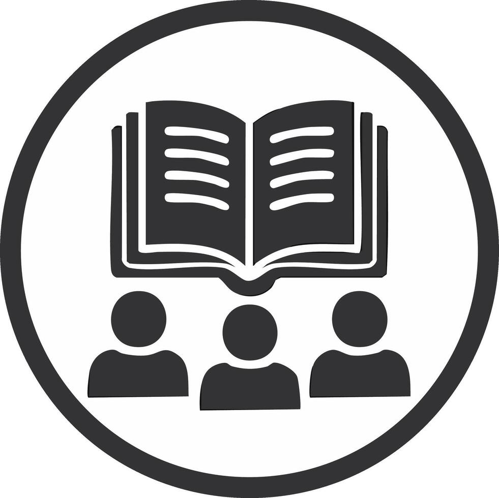 Group Learning Under Open Book Circle Icon Education and Knowledge Sharing Pro Vector