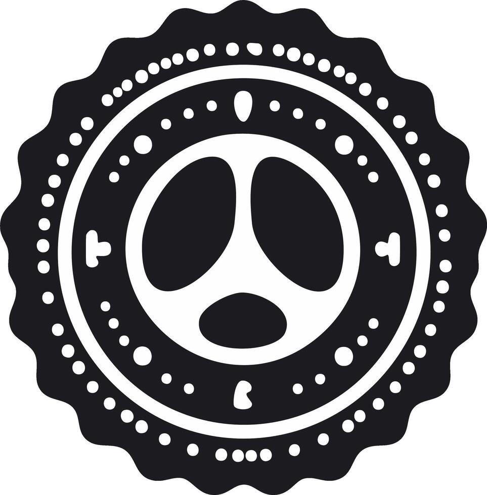 Black and white abstract round seal with a scalloped edge and geometric pattern Pro Vector