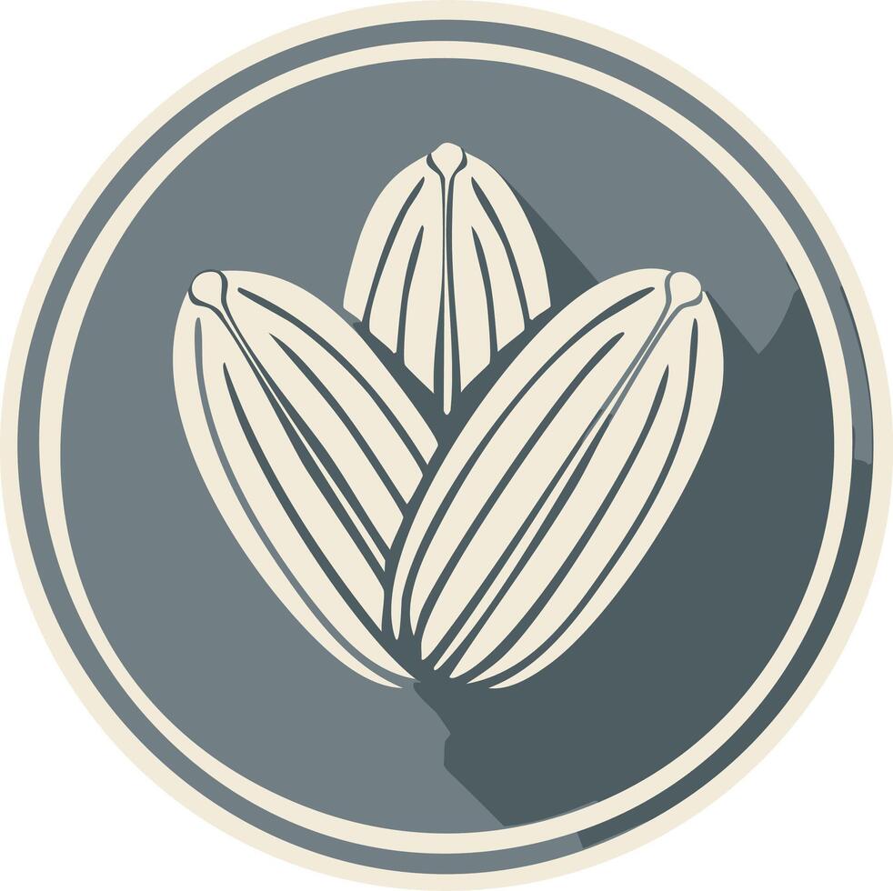 Stylized illustration of three stylized cocoa beans within a circular frame Pro Vector
