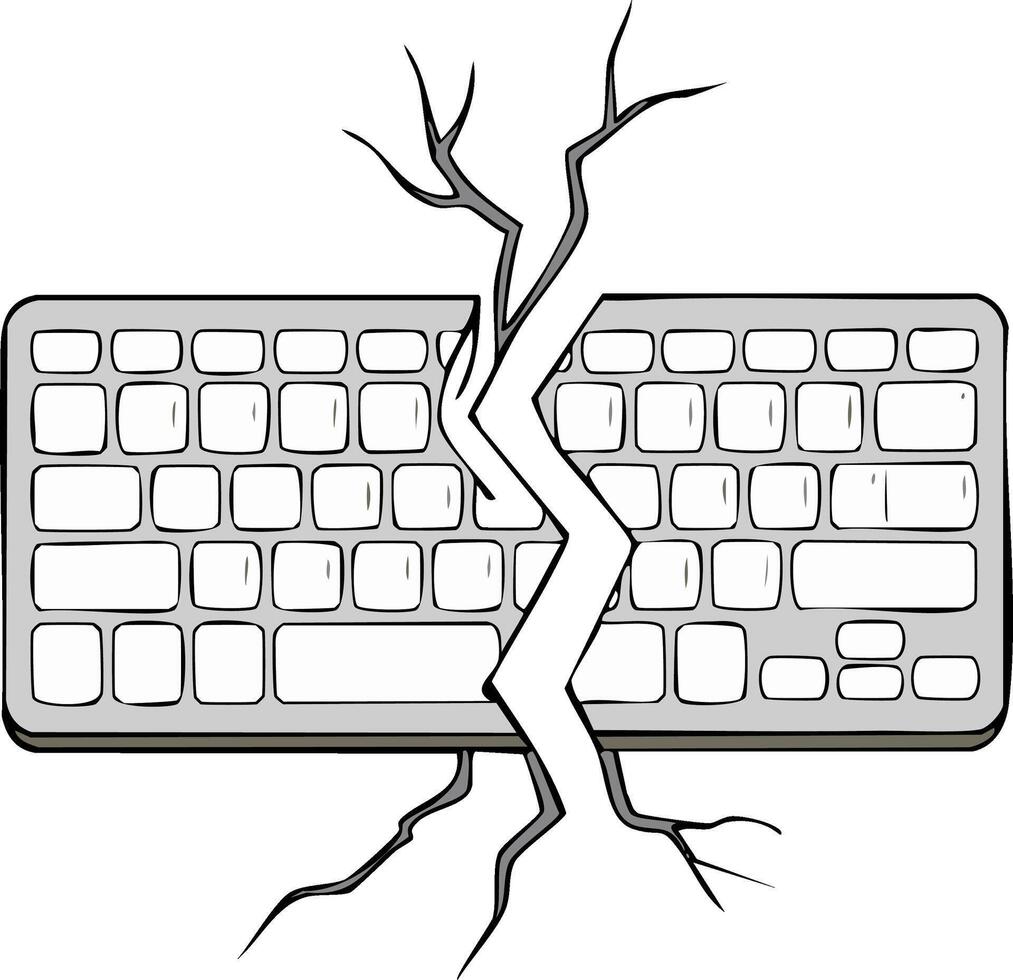 Broken Computer Keyboard Split by Lightning Strike and Tree Branches Pro Vector