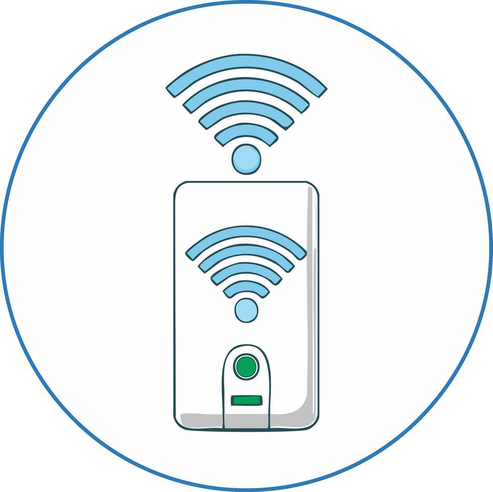 WiFi signal icon with router in blue circle for wireless communication concept Pro Vector