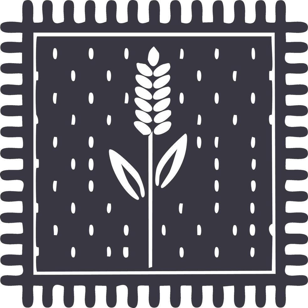 Minimalist graphic icon of a single wheat stalk in a rustic scalloped cracker frame Pro Vector