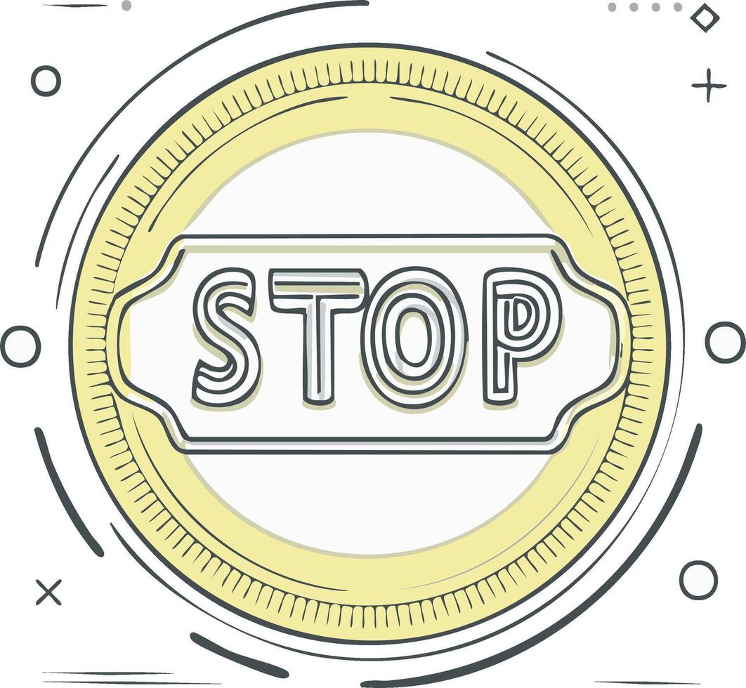 Stylized Stop Sign Circular Emblem with Dynamic Abstract Elements Pro Vector