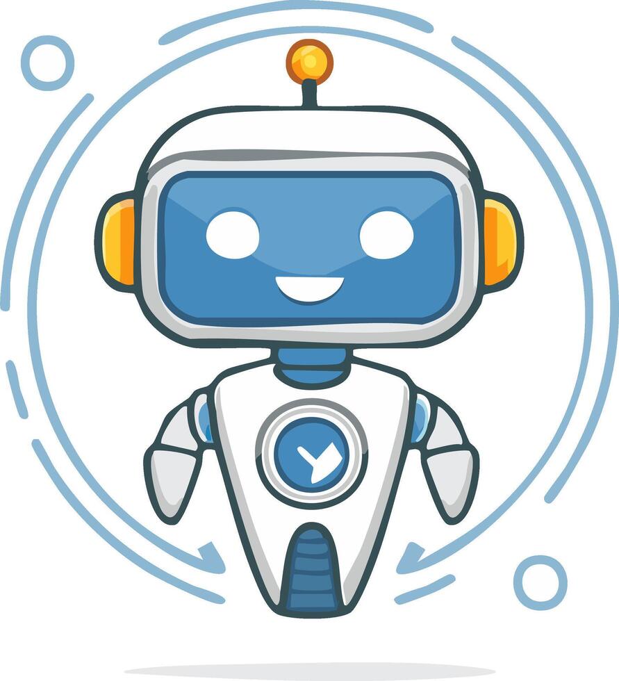 Friendly robot character illustration with an interface design surrounded by arrows Pro Vector