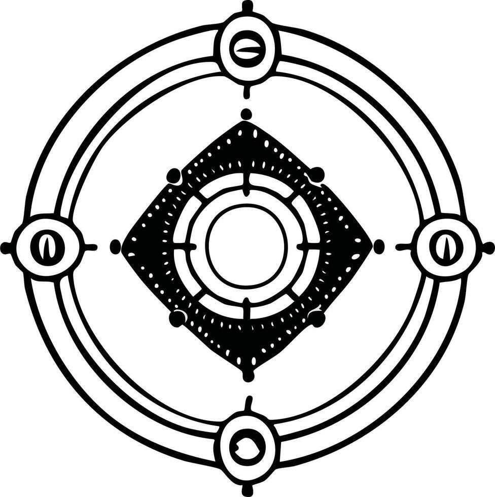 illustration of an intricate mystical geometric symbol with circular and diamond elements Pro Vector