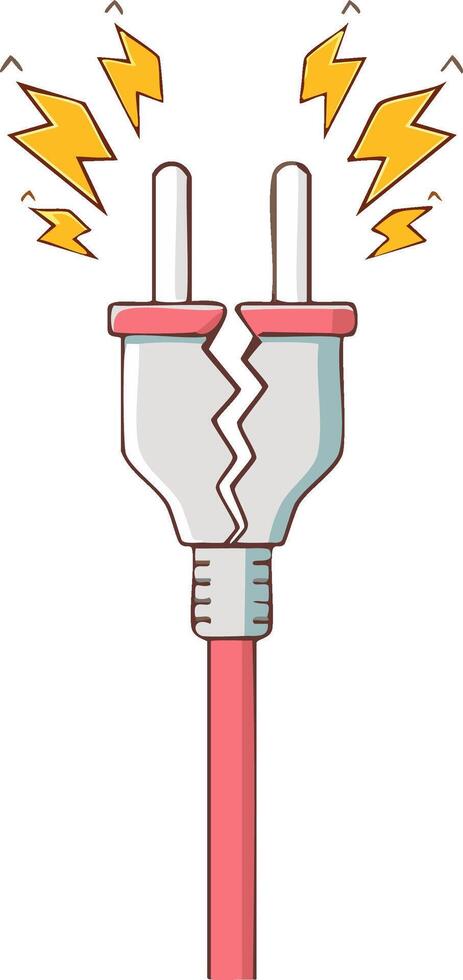Broken electrical power plug with lightning symbols representing danger and failure Pro Vector