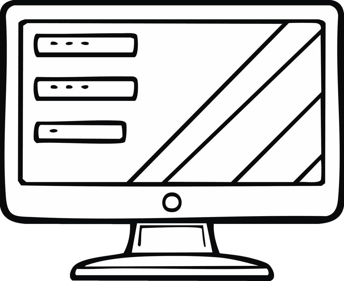 Desktop Computer with Interface Fields and Lines Displayed in Hand Drawn Line Art Pro Vector