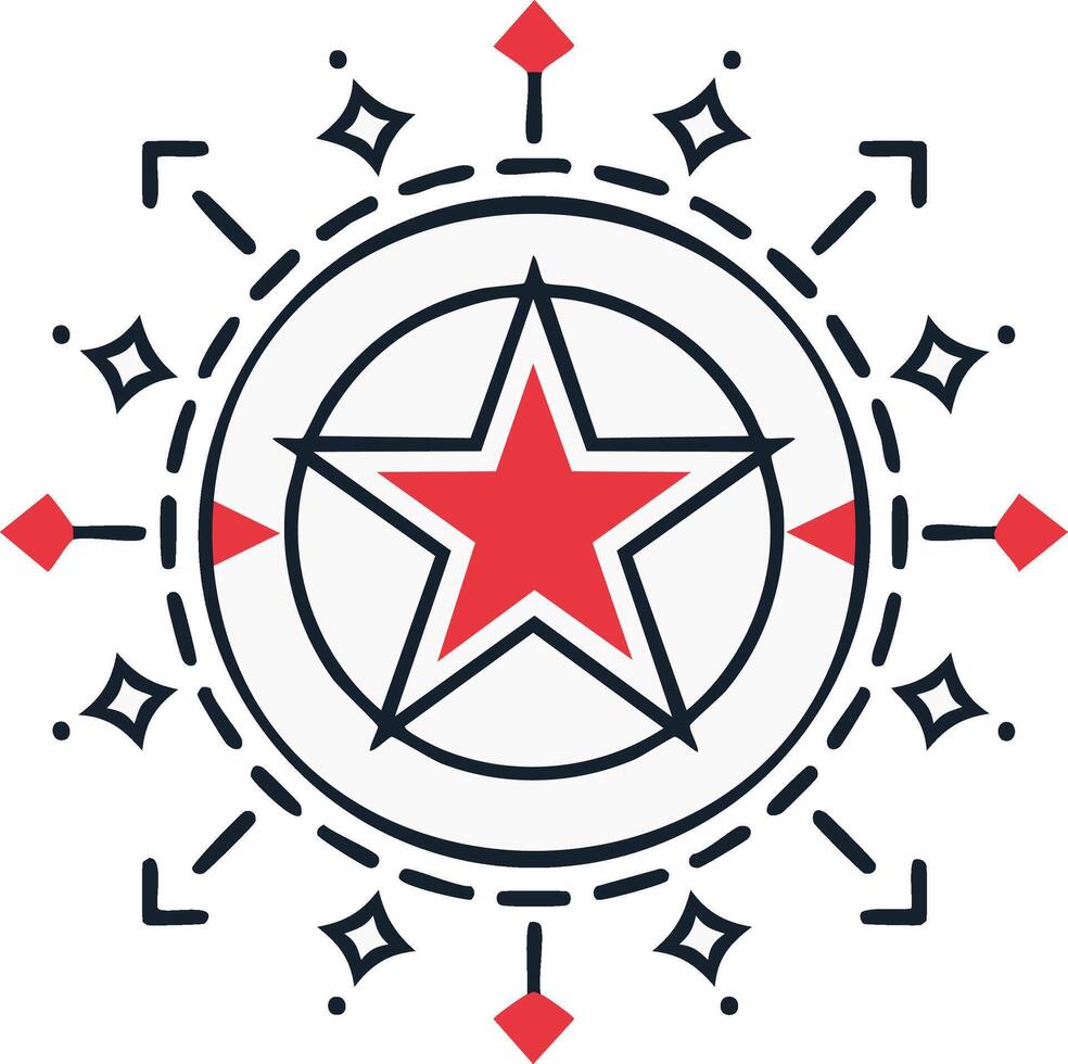 Red Star Centered in Abstract Geometric Compass Style Graphic Element Pro Vector