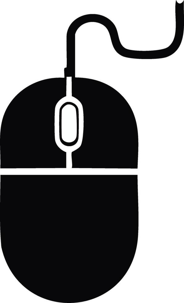 Computer Mouse Black and White Graphic, Wired Peripheral Device for Desktop Work Pro Vector