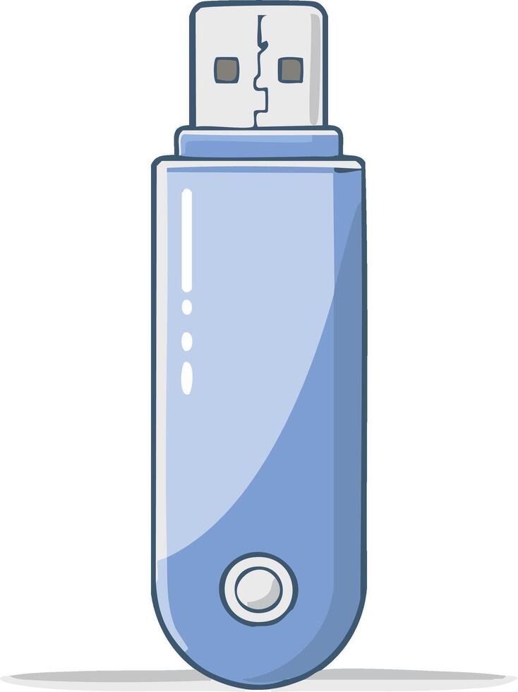 Blue USB flash drive with a metallic connector and a circular indicator light Pro Vector