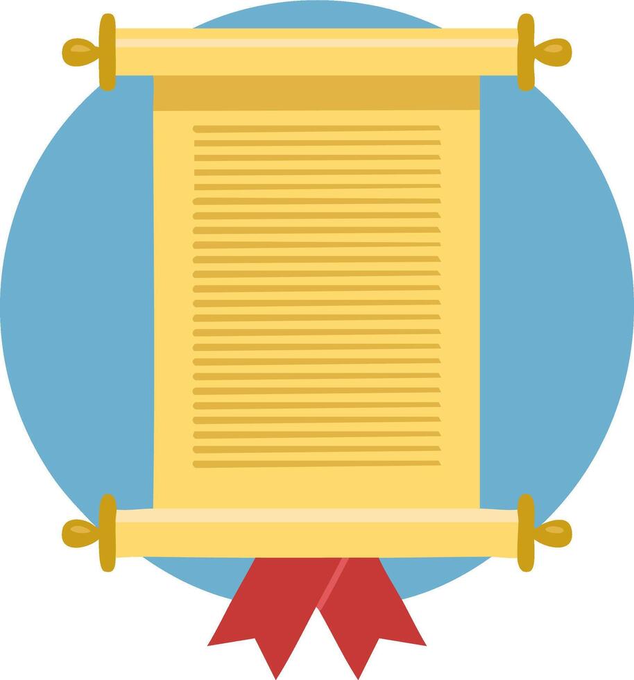 Stylized golden paper scroll with text and red ribbon ancient decree or official certificate diploma Pro Vector