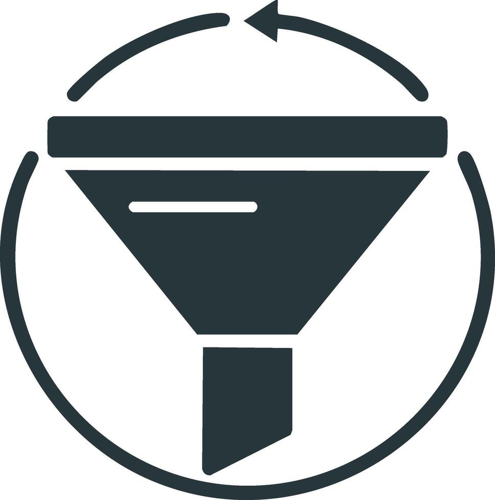 Conceptual icon representing a funnel with a circular arrow indicating a process or cycle Pro Vector
