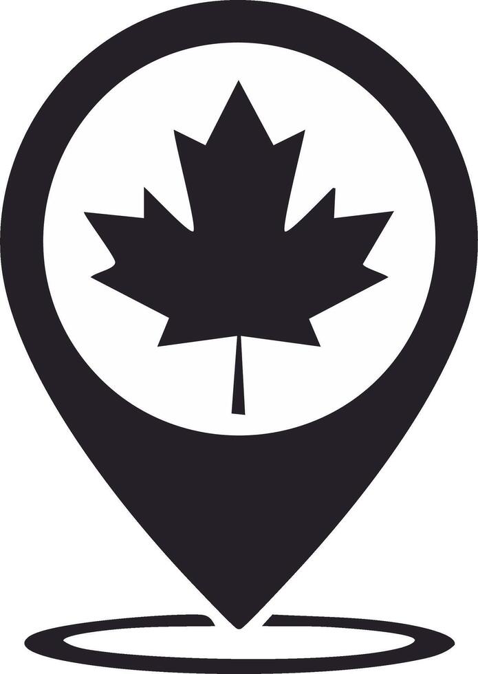 Icon depicting Maple leaf and Geo pointer marking Canada on map country location Pro Vector