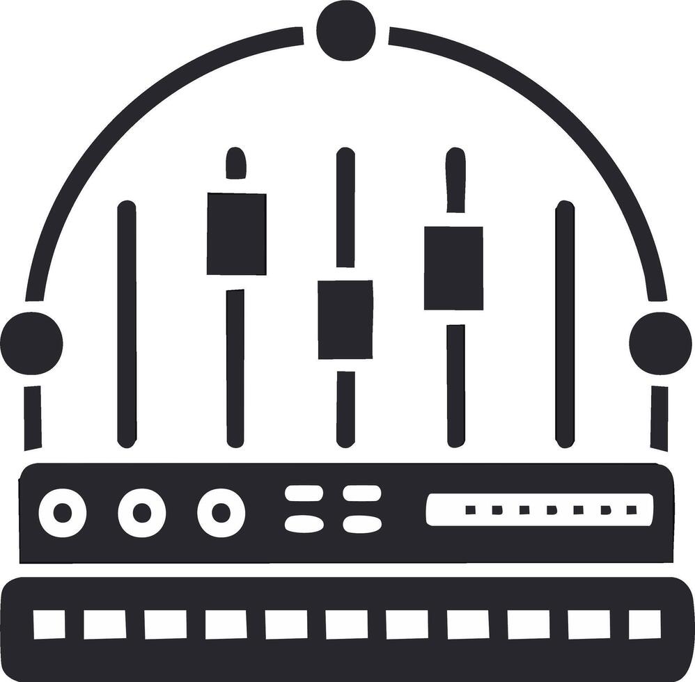 Isolated drawing Studio audio mixing console with faders, equalizer, knobs, buttons and display Pro Vector
