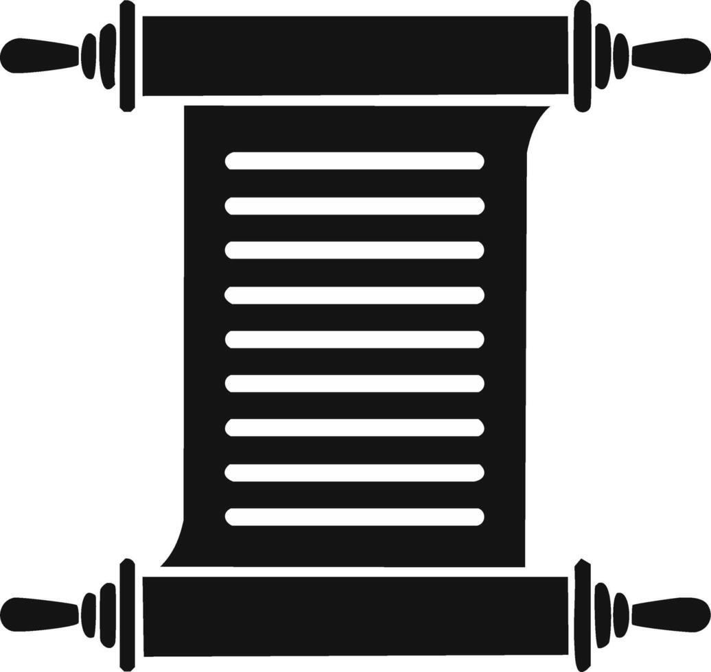 Traditional unrolled scroll with text lines, ancient parchment document icon Pro Vector