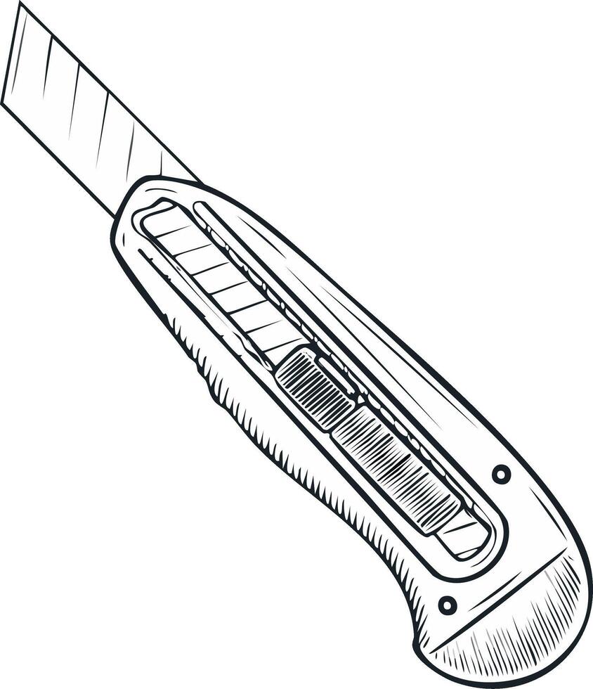 Line art illustration of a utility knife with an extended sharp blade a common manual cutting tool Pro Vector