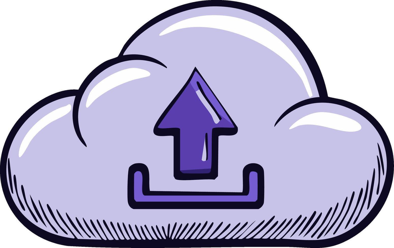 Purple cloud with upload arrow symbol a simple hand drawn icon representing digital data transfer Pro Vector