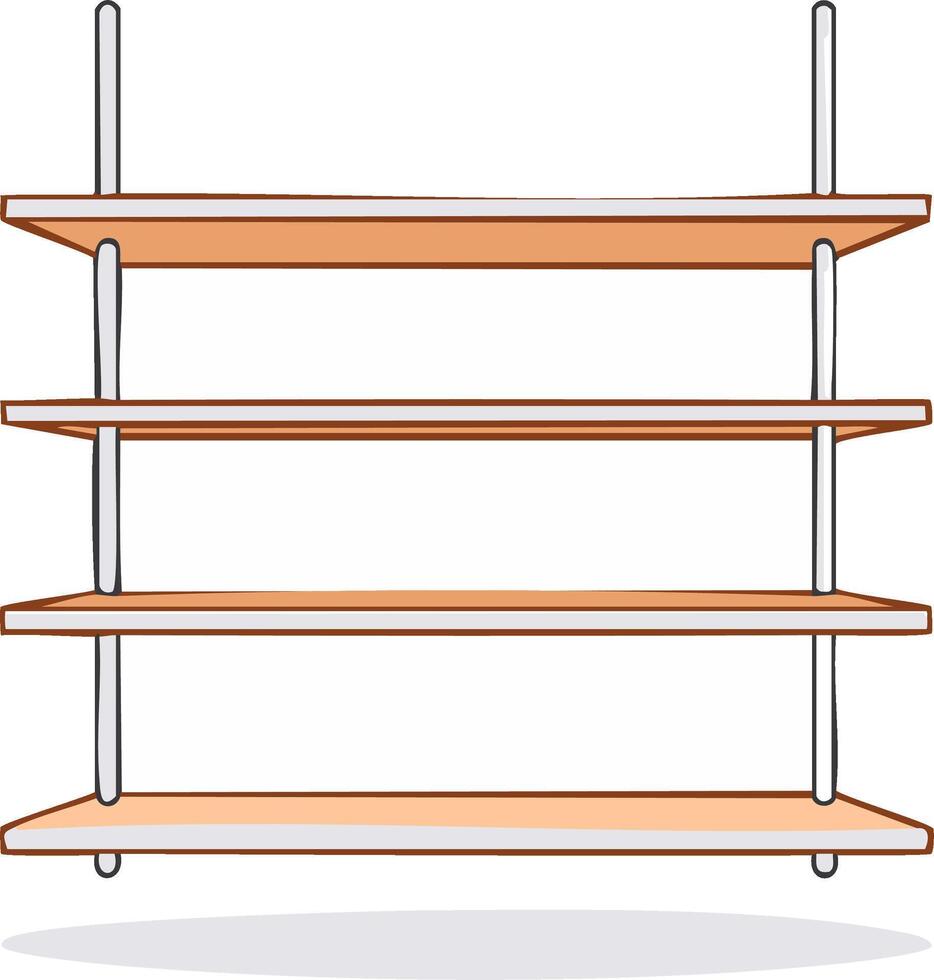 Empty Shelves Illustration Four Tiered Wooden Shelf Display with Metallic Supports Furniture Design Open Storage Solution Simple Design Pro Vector