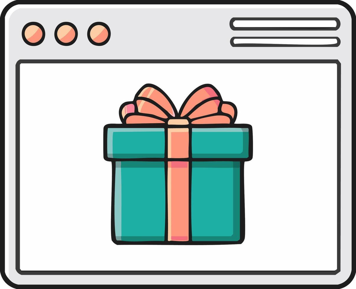 Web Browser Window Displaying a Teal Gift Box with a Coral Ribbon and Bow Pro Vector