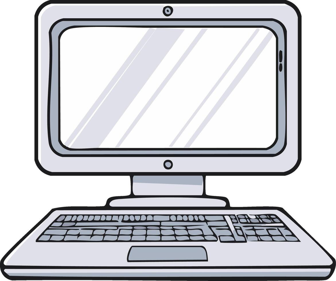 Classic Desktop Computer with Keyboard and Blank Screen Digital Illustration Pro Vector