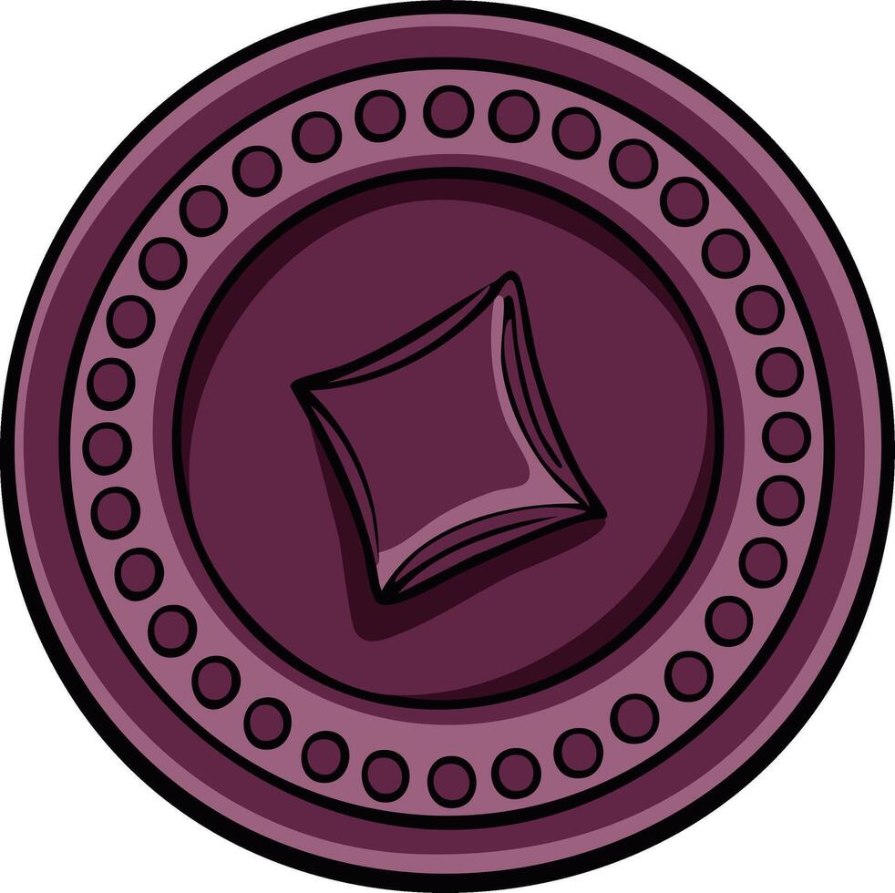 Purple playing card symbol coin with circle border and embossed diamond shape Pro Vector
