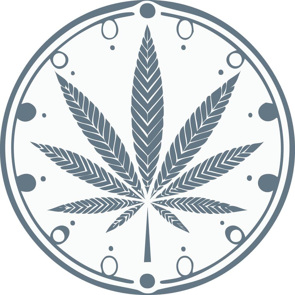 Stylized cannabis leaf with geometric pattern in a decorative circular frame Pro Vector